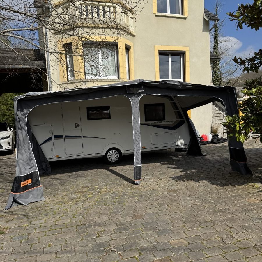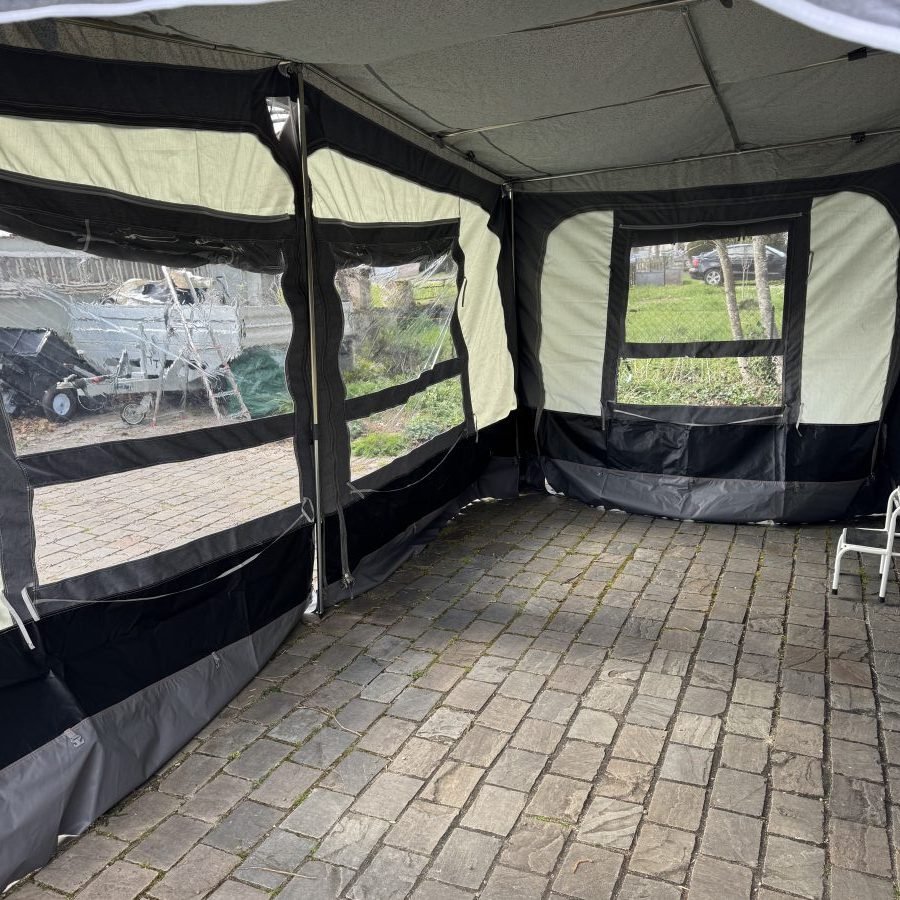 - Großes Vorzelt zur Erweiterung des Wohn- und Außenbereichs
