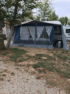 - Außenausstattung: Vorzelt, Fahrradträger, TV-Antenne