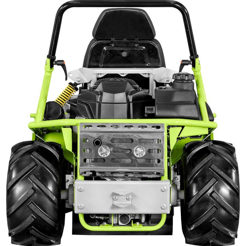 Débroussailleuse autoportée Grillo Climber 10 2WD 27 avec transmission hydrostatique Kanzaki K664 et freins sur 4 roues. Moteur Kawasaki FS 730V 726cc 22 HP, largeur de coupe 93cm, réglage hauteur assisté par vérin à gaz. Franchit les pentes jusqu’à 27 degrés.