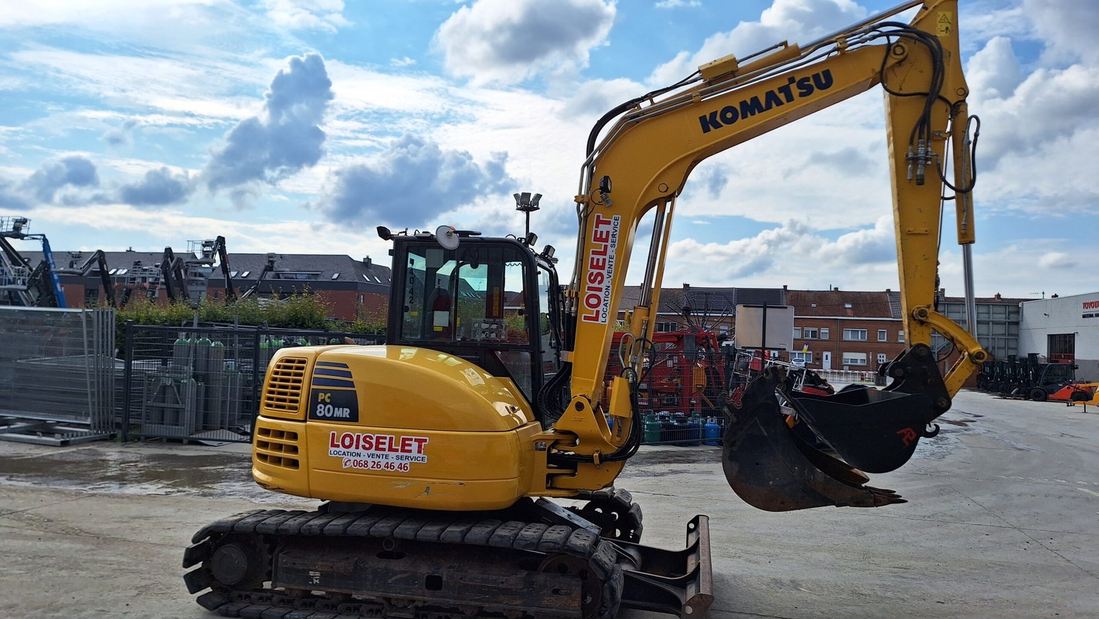 Komatsu PC80MR-3 Mini pelle occasionMini pelle compacte de la série MR-3 adaptée aux travaux de terrassement et d’aménagement en zones contraintes. Modèle PC80MR-3, configuration sur chenilles, catégorie 8 tonnes, machine d’occasion.Avantages clés— Format compact pour accès restreints; stabilité sur chenilles; polyvalence pour chantiers variés.Caractéristiques techniques— Marque : Komatsu; modèle : PC80MR-3 ; paye : Belgique; type : mini pelle sur chenilles ; état : occasion ; puissance et heures non fournies.État et historique— Occasion; informations détaillées non communiquées; révisions et accessoires à préciser selon disponibilité.Utilisation recommandée— Terrassement, tranchées et aménagements en urbain; intervention en espaces réduits grâce à la compacité MR-3.Remarques— Contacter pour précisions sur équipements, heures, accessoires et conditions; vérifier les compatibilités d’attaches et d’outillages.