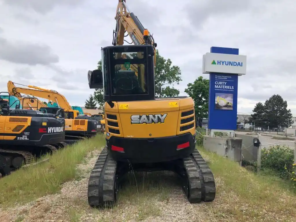 Sany SY50U Mini pelle 5 tonnes occasionMini pelle année 2023 de 5 tonnes en état neuf équipé de cabine, chenilles en caoutchouc et lame offrant une configuration professionnelle complète. Ligne BRH à double effet proportionnellement et ligne de rotation à double effet proportionnellement assurant précision et polyvalence maximales. Attache mécanique rapide avec 3 godets inclus pour adaptation aux différents types de travaux.Avantages clés— Machine en état neuf garantissant une fiabilité maximale. Cabine protégeant opérateur des intempéries. Ligne BRH double effet proportionnelle pour utilisation brise-roche avec contrôle précis. Ligne rotation double effet proportionnelle pour accessoires rotatifs avec dosage parfait. Trois godets inclus pour polyvalence maximale.Caractéristiques techniques— Marque : Sany, modèle : SY50U, année : 2023. Poids : 5 tonnes (50 quintaux). Type : mini pelle.Équipements inclus— Cabine pour protection opérateur. Chenilles en caoutchouc préservant les surfaces. Lame pour stabilisation et nivellement. Ligne BRH à double effet proportionnellement pour brise-roche avec contrôle précis. Ligne de rotation à double effet proportionnellement pour les accessoires rotatifs. Attache mécanique rapide facilitant le changement. 3 godets pour différents types de travaux.État général— État neuf pour machine récente 2023. Matériel en condition optimale. Prêt à l’emploi immédiat.Utilisation recommandée— Idéale pour professionnels recherchant mini pelle bien équipé 5 tonnes. Ligne BRH double effet adaptée aux travaux de démolition avec précision. Ligne de rotation double effet proportionnellement permettant un contrôle optimal des accessoires rotatifs. Trois godets maximisant la polyvalence sur des chantiers variés.Remarques— Poids de 5 tonnes offrant une excellente stabilité pour les travaux intensifs. État neuf garantissant des performances optimales sans usure. Lignes à double effet proportionnelles offrant une précision de contrôle exceptionnelle. Configuration professionnelle complète avec cabine et équipements avancés. Machine récente 2023 prête à l’emploi immédiat sans frais supplémentaires.